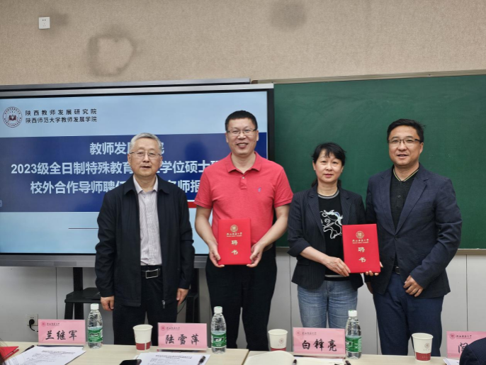 2023级特殊教育专业学位硕士研究生校外合作导师聘任仪式暨名师报告会在教学一楼举行。特殊教育专业学位硕士研究生校外合作导师代表宁波市达敏学校陆雪萍校长、深圳市南山区龙苑学校白锋亮校长和特殊教育名师代表厦门市心欣幼儿园闫洁主任应邀出席。学院副院长兰继军,副书记、副院长鲁文华,教育硕士导师代表王延松教授,学院专业教师,2023级特殊教育硕士生及硕士生代表参加。