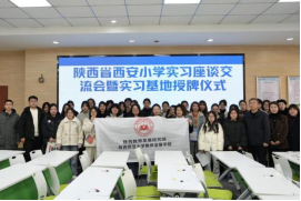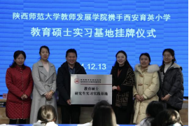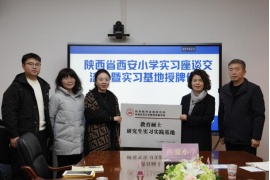 的办学理念、专业特色及建设成效。西安小学校长李涛、西安育英小学校长李继恒均表示,要以共建实习基地为契机,加强连接师范生教育与教学实践的桥梁,携手共育出更多适应新时代教师专业发展要求及基础教育改革需要的优秀师资,不断为未来的教育事业注入强劲动力。实习生们也表达了自己在实习期间的收获和感想。最后,学院授予西安小学、育英小学“教育硕士研究生实习实践基地”牌匾。